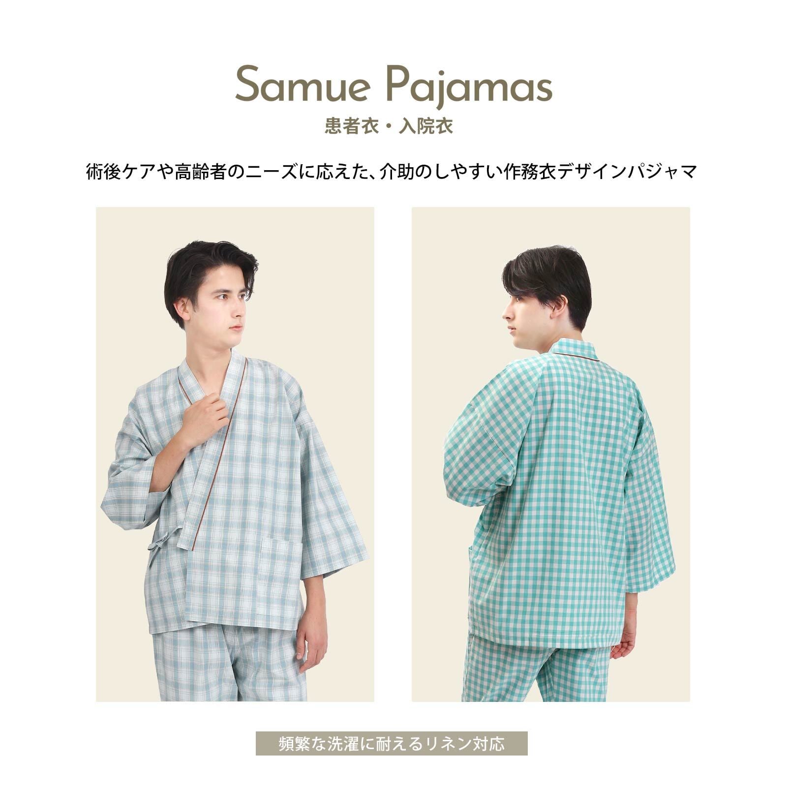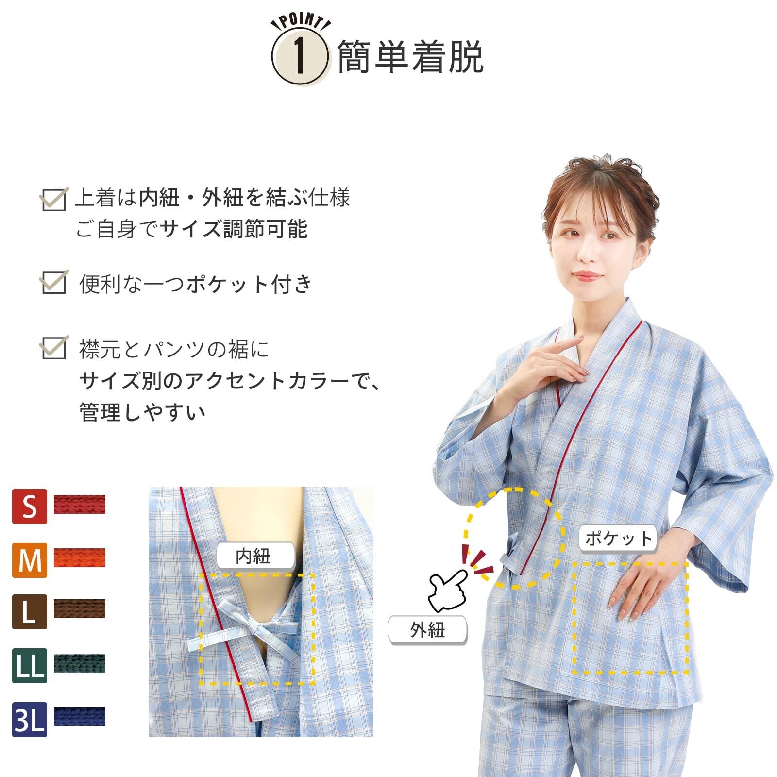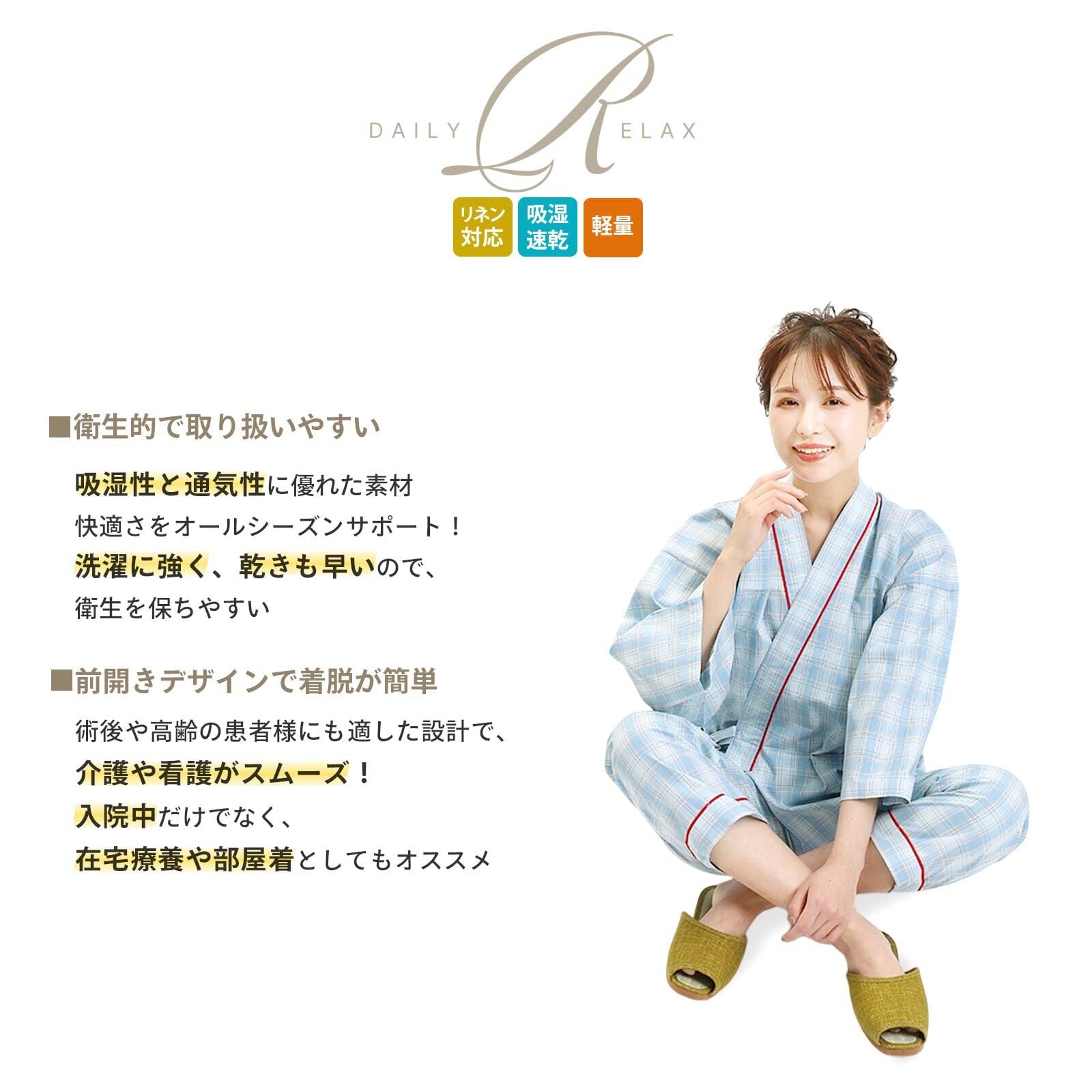 男女兼用の入院着・患者衣パジャマで、介護や入院時に快適に動ける前開きデザイン。