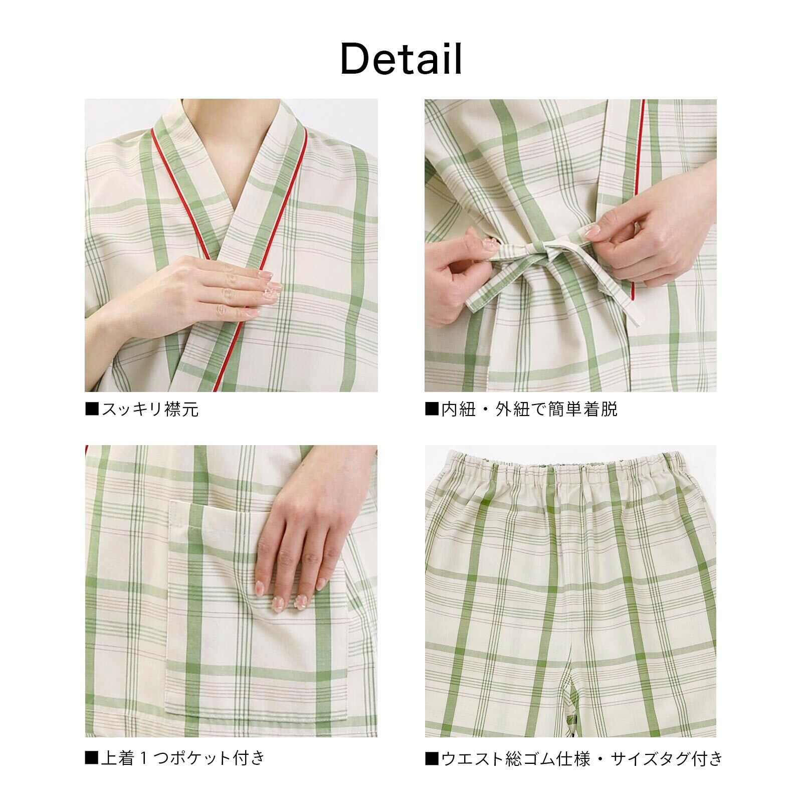 男女兼用の入院着・患者衣パジャマで、介護や入院時に快適に動ける前開きデザイン。
