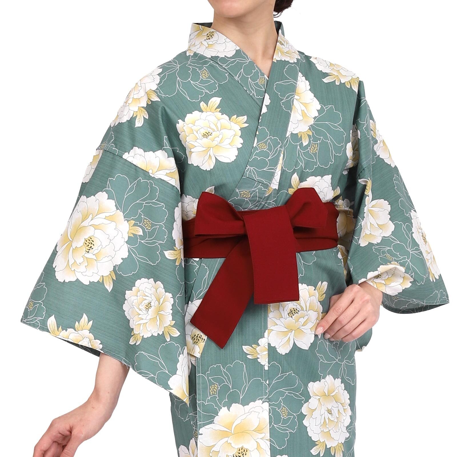 旅館浴衣 浴衣帯 2点セット リネン対応 浴衣 レディース S/M/L/LLサイズ 牡丹の詩 102