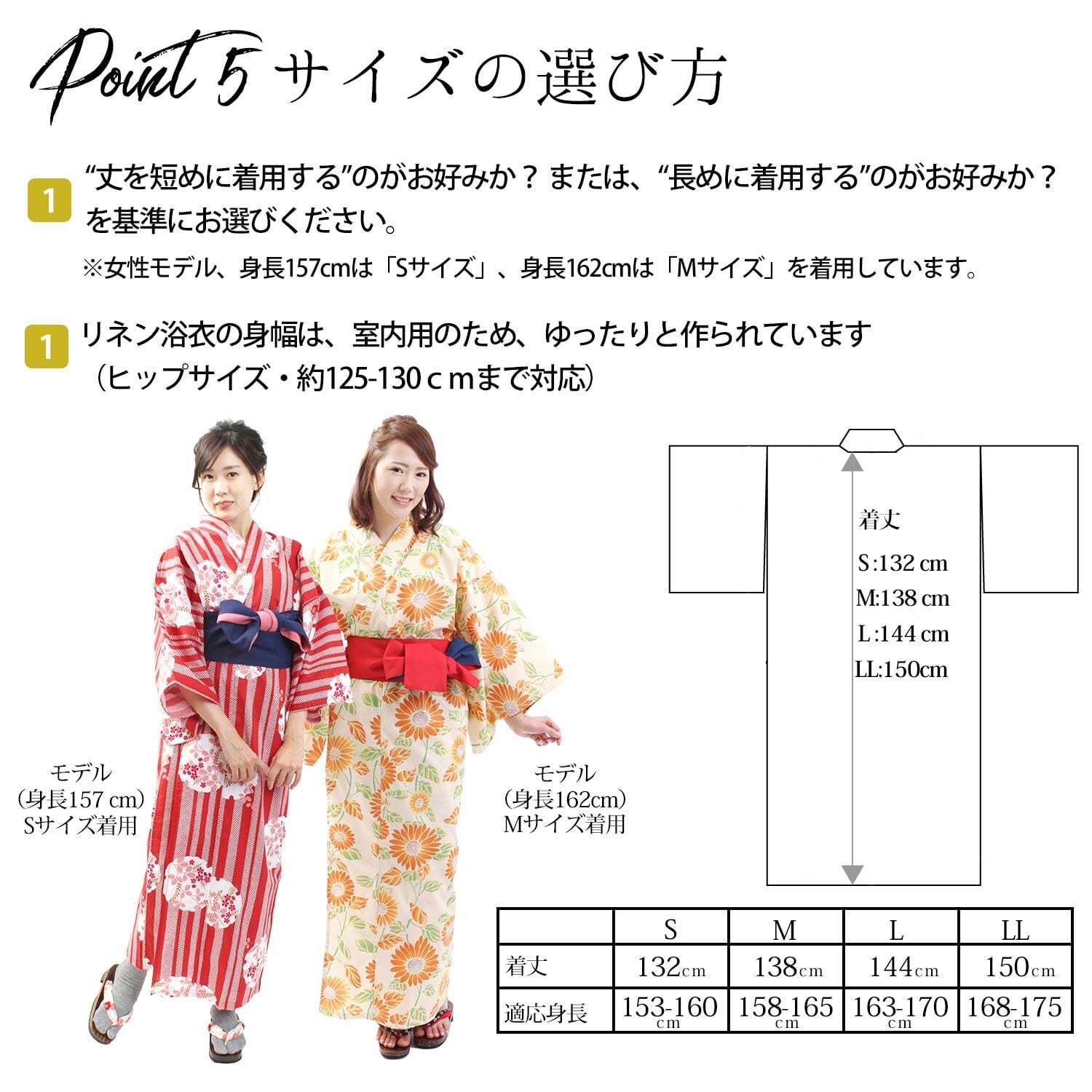LLサイズ:対応身長168~174cm/着丈約150cm/袖丈約42cm/身幅約72cm