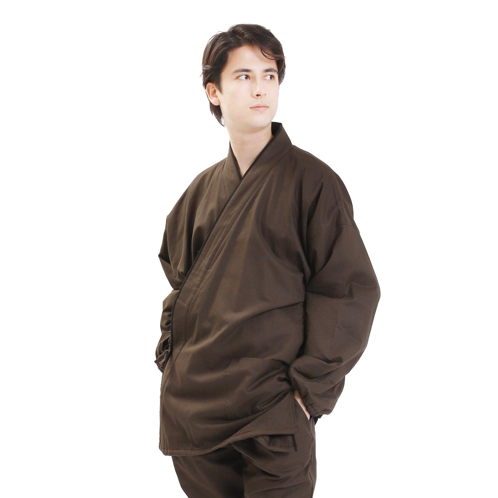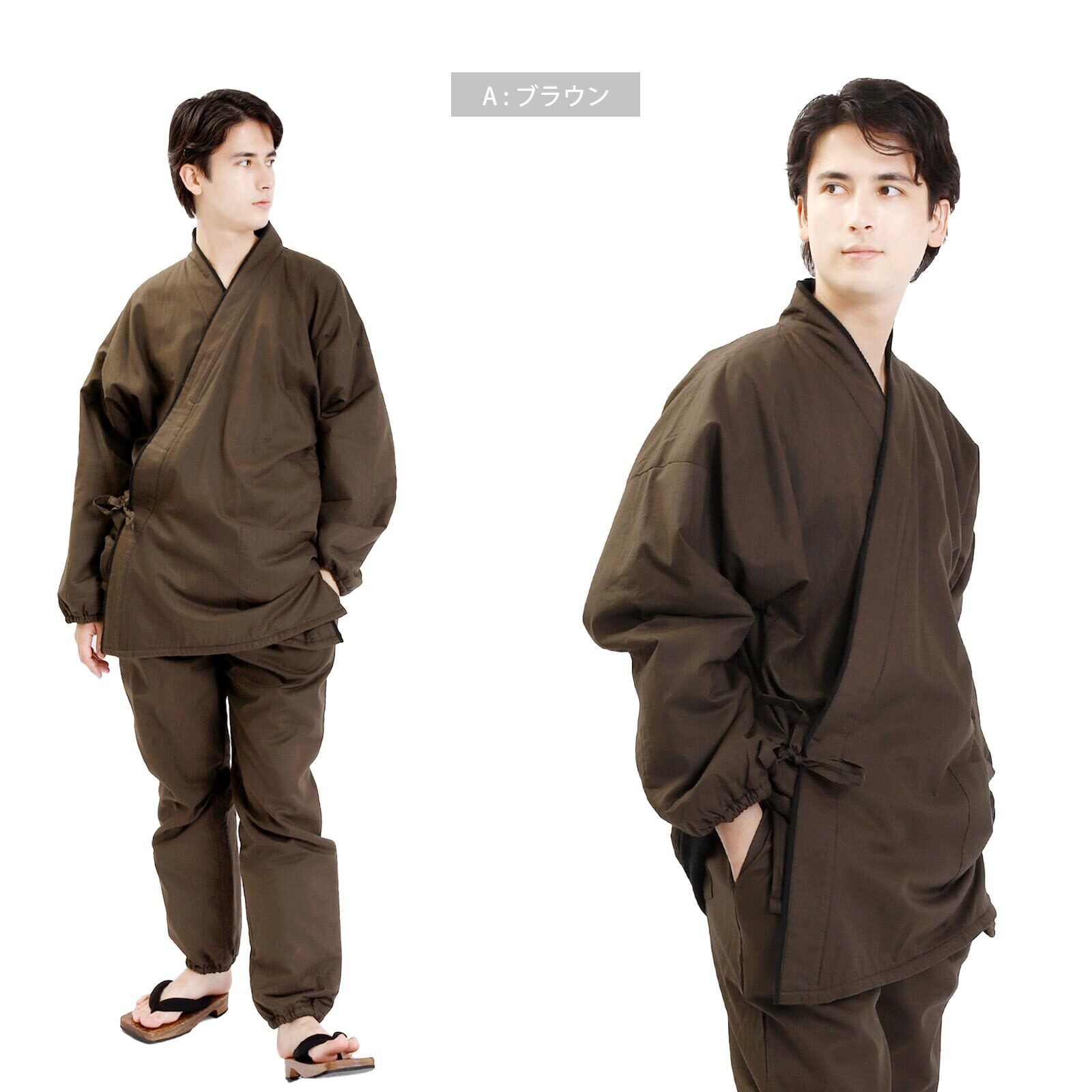 • 作務衣 上下セット メンズ M/L/LLサイズ ストレッチ 茶 単品
