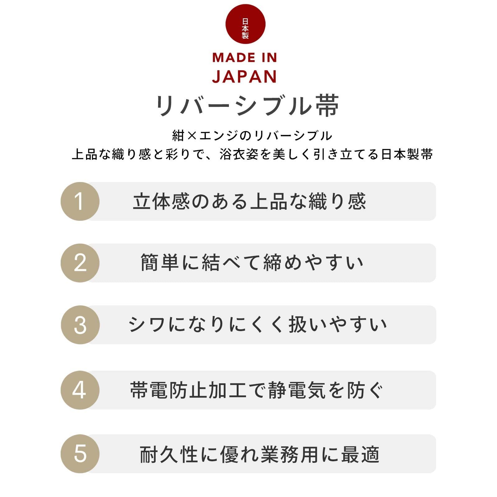 ブッチャー織りの適度な柔らかさのある、シワになりにくい日本製の旅館浴衣帯です。